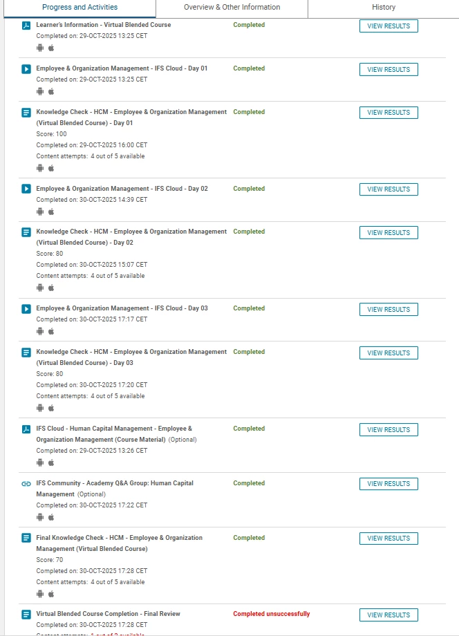 I recently started with the course “IFS Cloud - Human Capital Management - Employee & Organization Management (Virtual Blended Course)”, ID: SOCLDBEOM202303