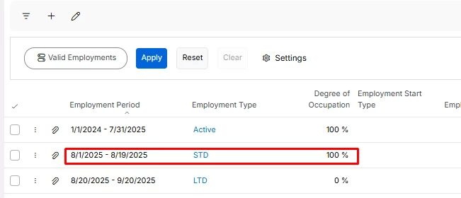 We are using Absence Thresholds, Employment Types, and Degree of Occupation to achieve this.