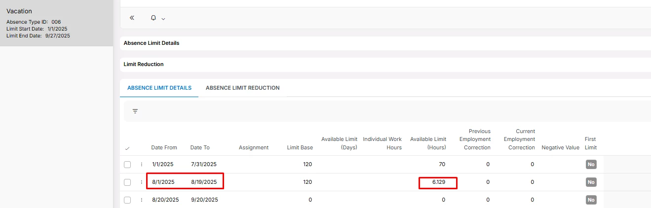 <Absence - Limit Details>
