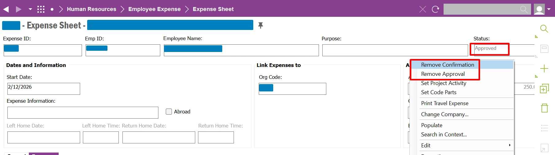 I have a requirement to restrict end users not to remove confirmation or remove approval when an expense sheet is approved. I need to control this through access attributes but not using permission sets. Should not be able to change the status from Approved to Confirmed or Preliminary.