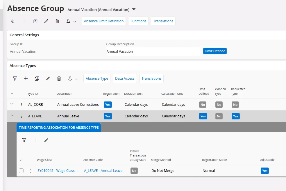 I have a request to define an absence type using calendar days for absence limit calculation.