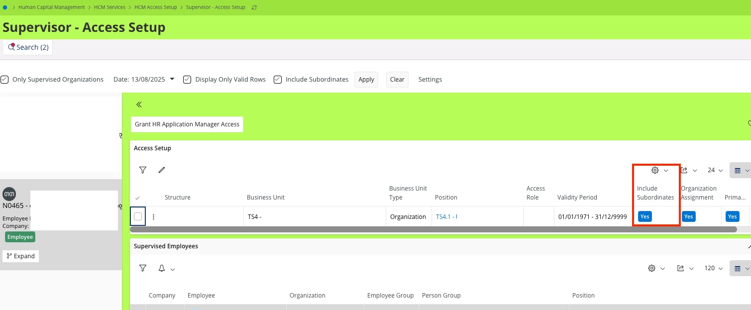 Please think about settings where it’s possible to set up automatic switch on for Include Organization subordinates on Supervision - access setup form.