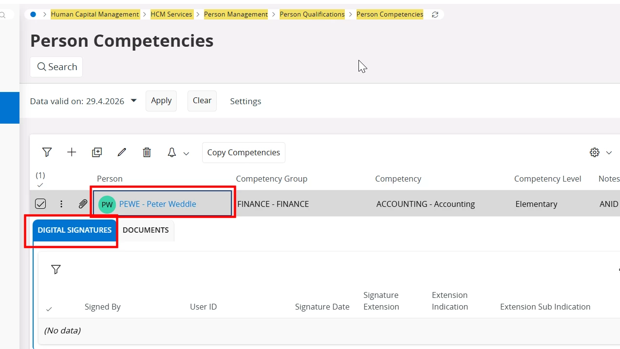 Could you kindly advice how to add Digital Signature in the Person Competencies Window