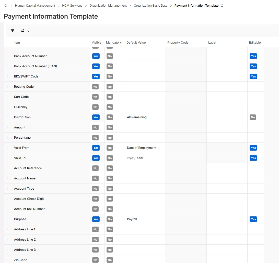 Does anyone know how this basic data works. Does this control the data in Employee payment files? E.g. if we make the address details not visible will that create employee payments without address details?
