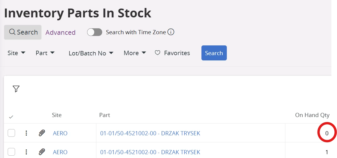 Inventory Parts In Stock form - Show Parts with 0 quantities