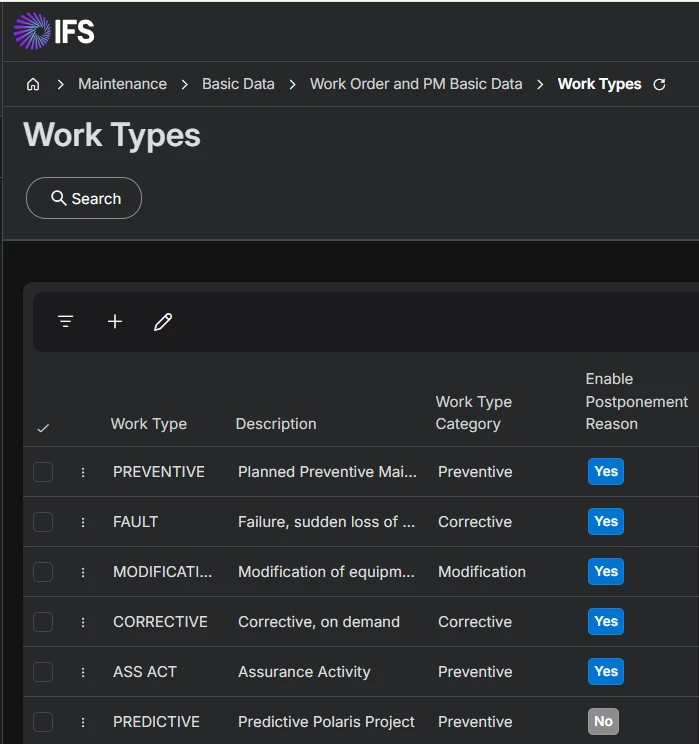 In IFS Cloud there is no standard option to directly deactivate or disable a Work Type. However, it is possible to prevent users from using a specific work type such as “FAULT”.