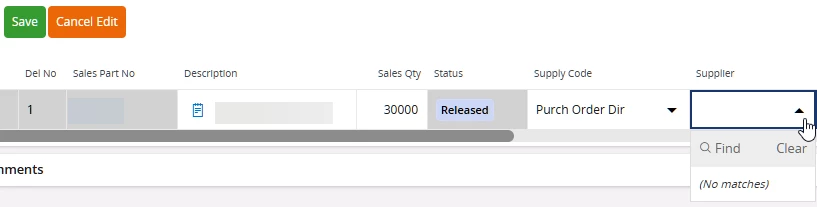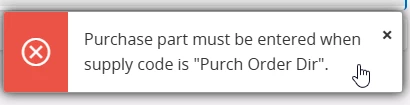 • Not allowed to save the Supply Code change to “Purchase Order Direct”.