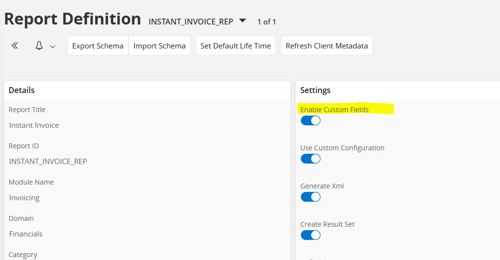 Enabled On Reports tick box is ticked as well. Can anyone help me to get the custom field to the IFS Report Designer.