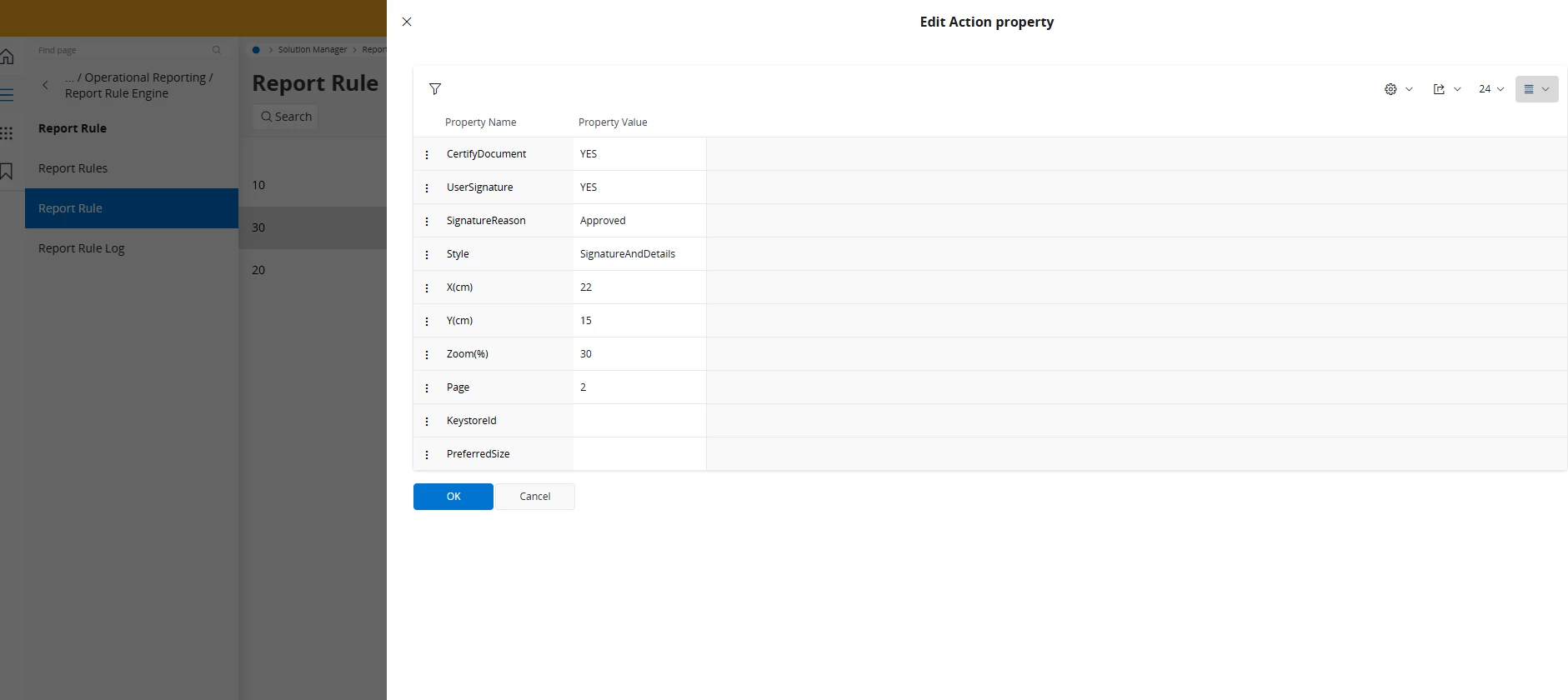 I need to add an e-signature to the end of the Purchase Order report. I created a report rule and there is an option to specify the page number on which the signature should appear. However, I want the signature to appear on the last page, and since the total number of pages may vary, I cannot specify an exact page number. Is there a solution for this?