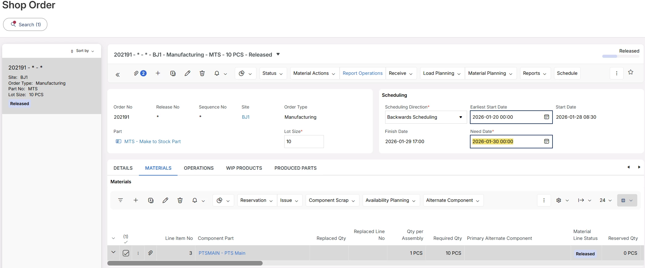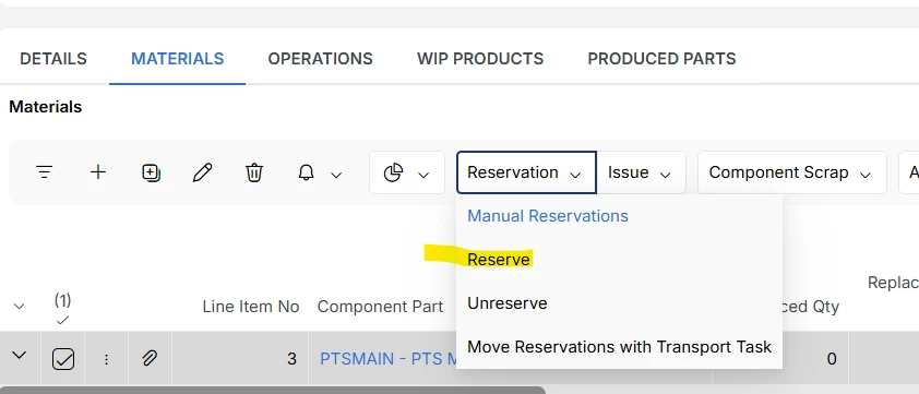 However, when reserving the quantities in the shop order, the system automatically reserved 3 units from the alternate part and 2 units from the main part. Since Consume After Main Component was selected, I expected the system to reserve 4 units from the main part and only 1 unit from the alternate part.