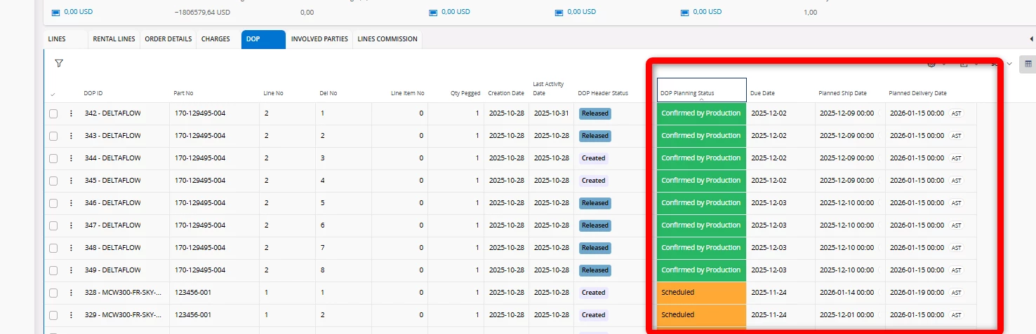 But when the Customer Order is released and the DOP Header is created, the demand for purchase parts is gone. This cause issues in purchasing and MRP Action Proposal/ Inventory Part Availability Exeptions shows that you have no demend.