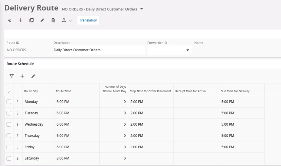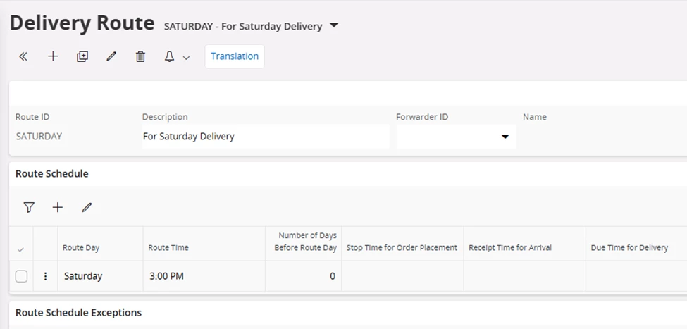 So I am trying to setup the system to auto calculate a Wanted Delivery Date for Saturday deliveries. I was trying to do it through a Delivery Route but I am not sure if that the right way to do it. I tried to create a new calendar that includes Saturdays as a working day and attach it (External Transport Calendar) to a Saturday delivery service Ship Via code, but I still can’t get the Wanted Delivery Date to auto calculated if I pick a Saturday Delivery Ship Via.