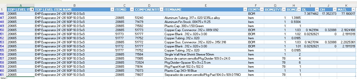 I have a customer that has a requirement to send detailed cost information of their parts manufactured in Mexico to the Mexican Government. To do this, they use an excel spreadsheet that is used to load into a customs broker system called Aranxel.