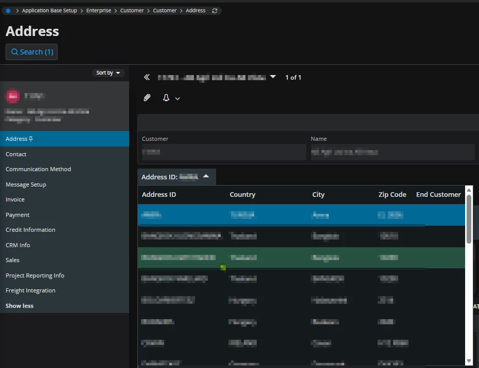 Actual result: Some Address IDs are missing from the list. In my example, the customer has 34 distinct Address IDs in the database, but only 25 are visible in the list.