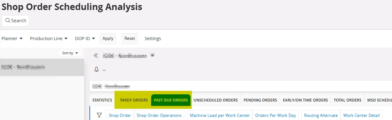 - Shop Order Finish Date > Shop Order Need Date.