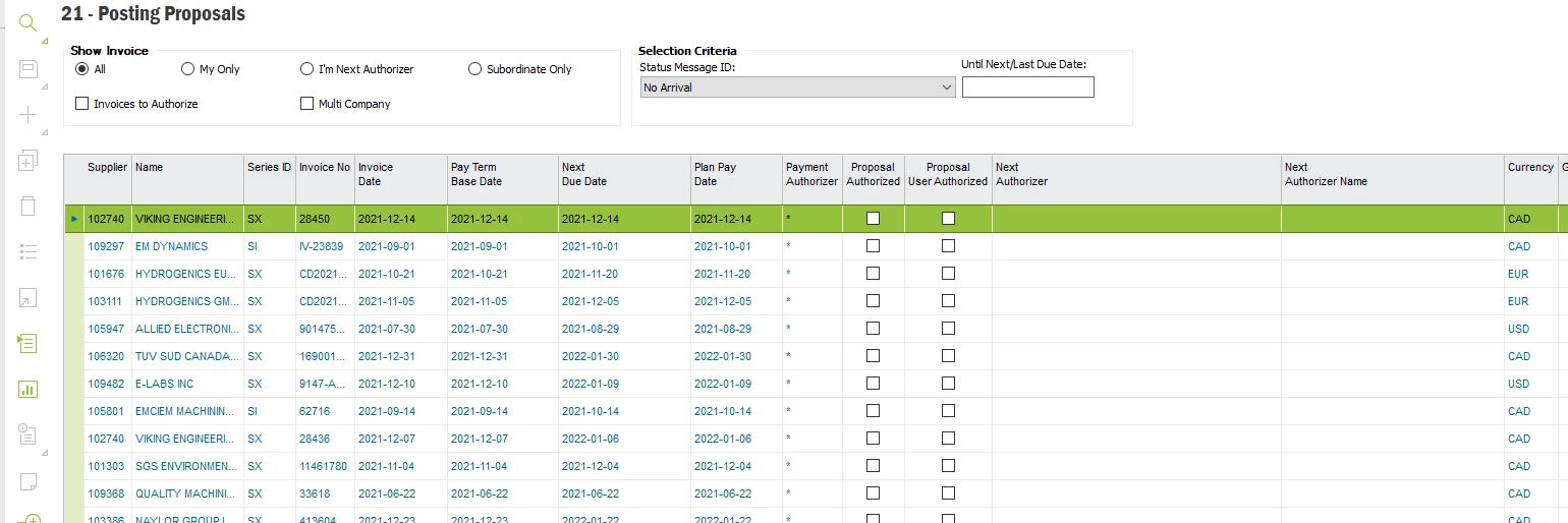 please see the picture attached, in Posting Proposals window, selection criteria No Arrival for some people, the window does not show anything, whereas some people does have the list.