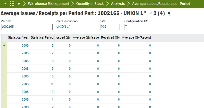 do we have a report or window that will give the same info for window Average Issues/Receipts per Period?