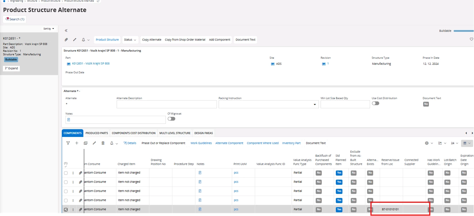However when I try to do this for configuration structure instead of the product one, the automatic reservation is not an option. To be fair, I am not using the floor stock.