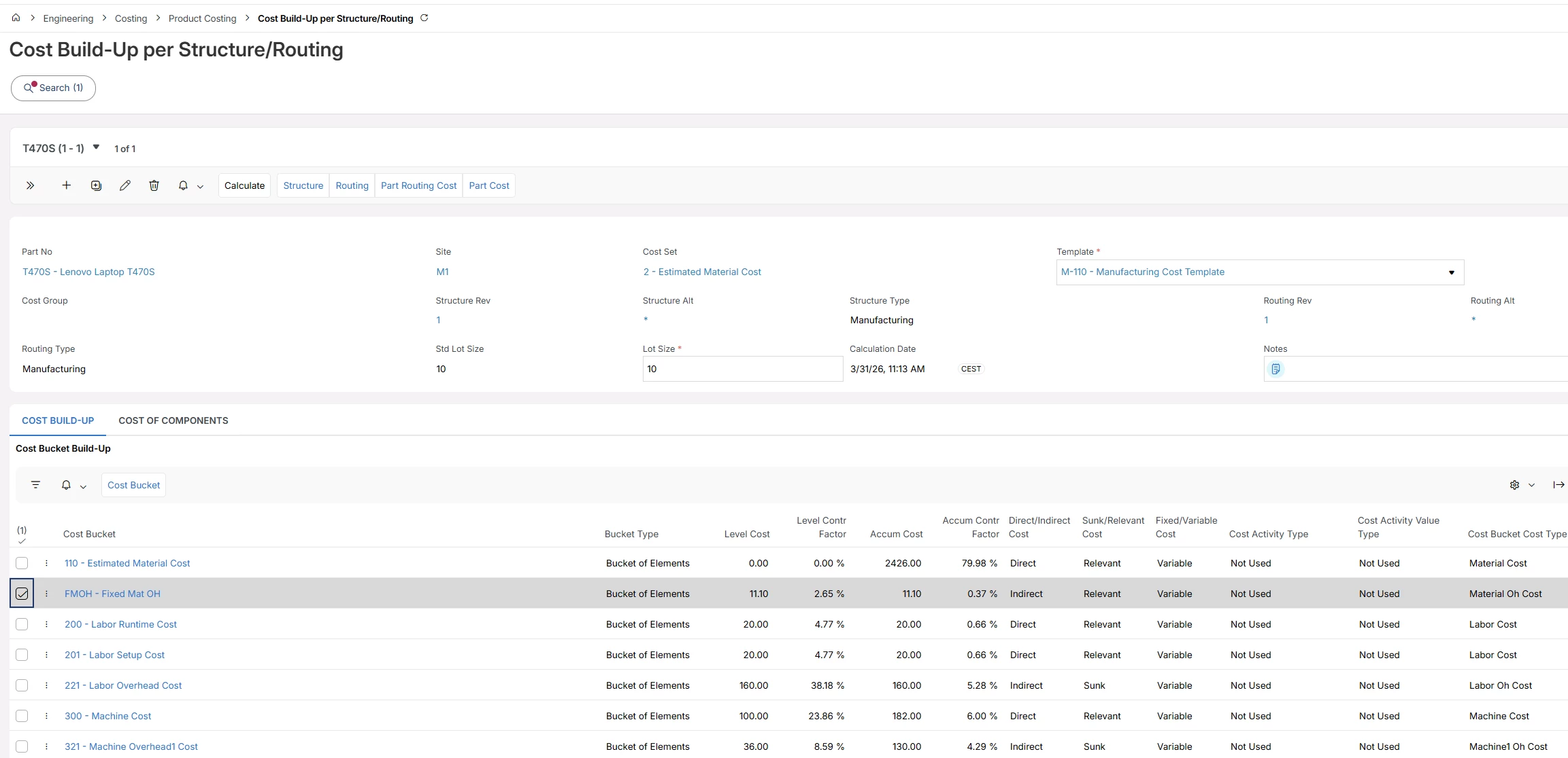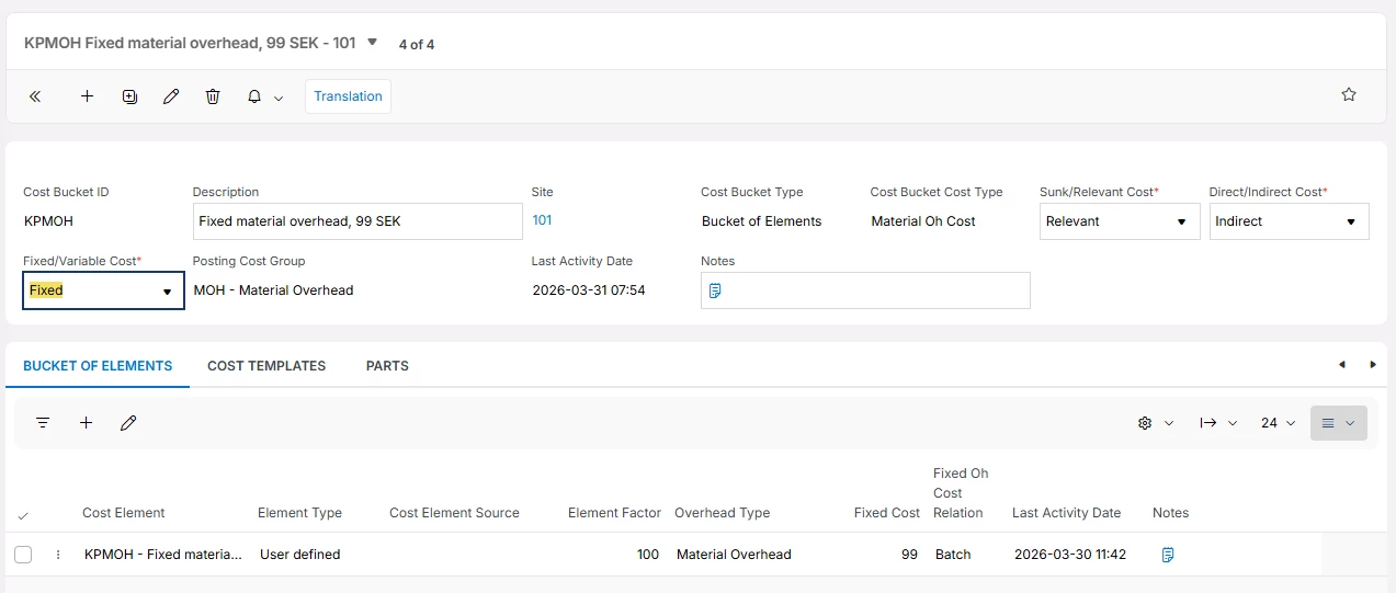 We’re trying to set up a material overhead with a fixed cost per part in the structure - the idea is that each issue shall generate a posting with that cost, and that there should be a fixed cost per part rolled up to the next level. E g if the overhead is 100, and there are two parts in the structure of the manufactured part, the cost would be 200.