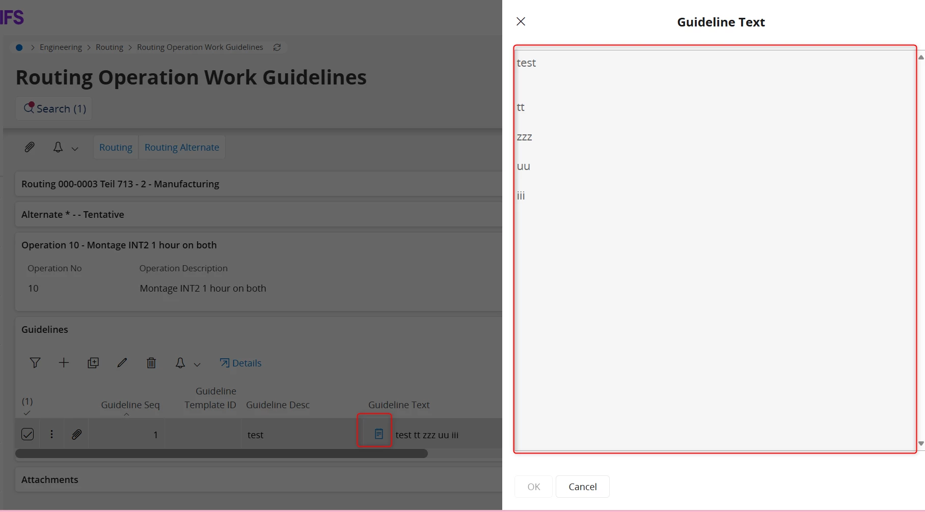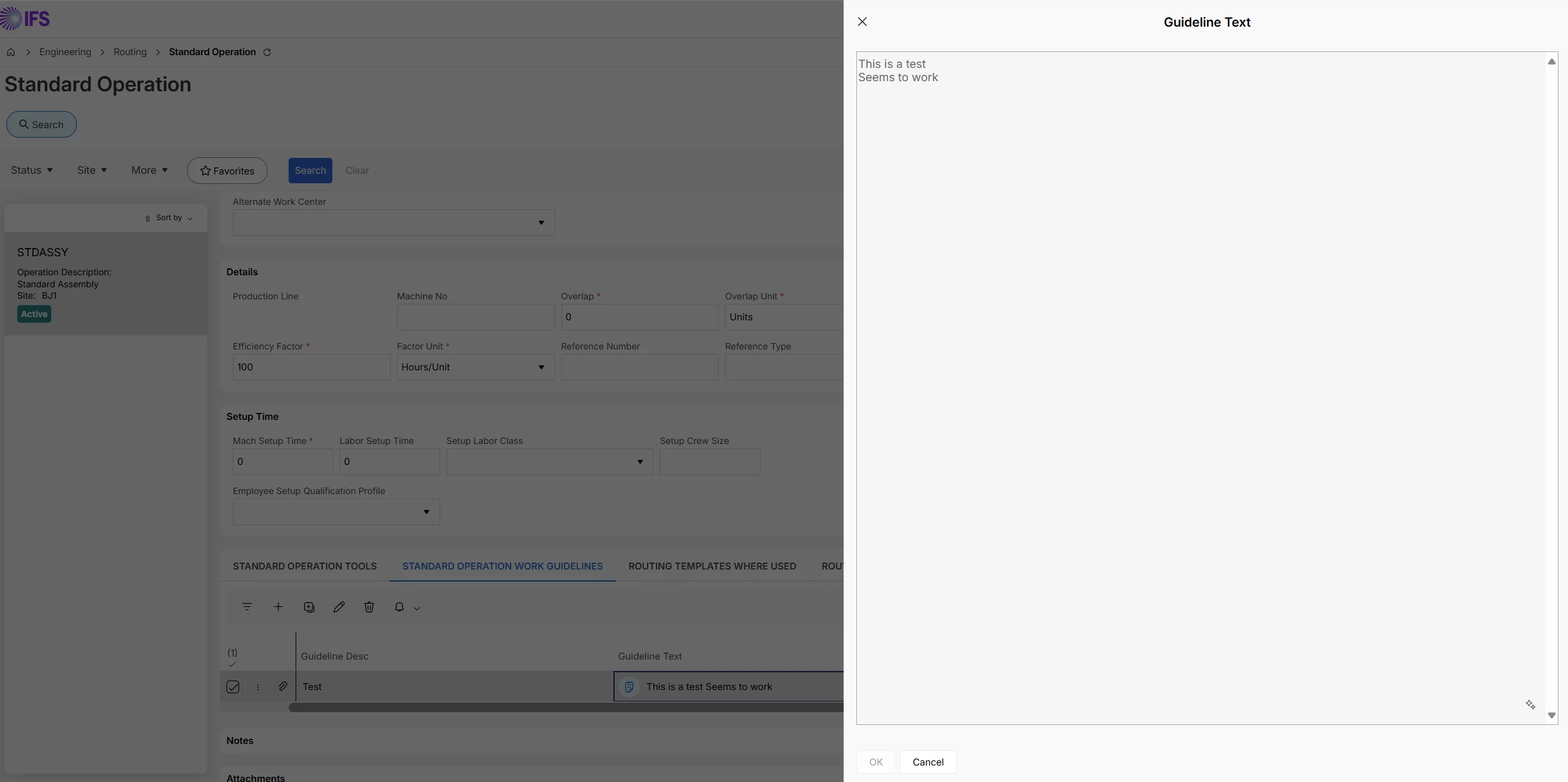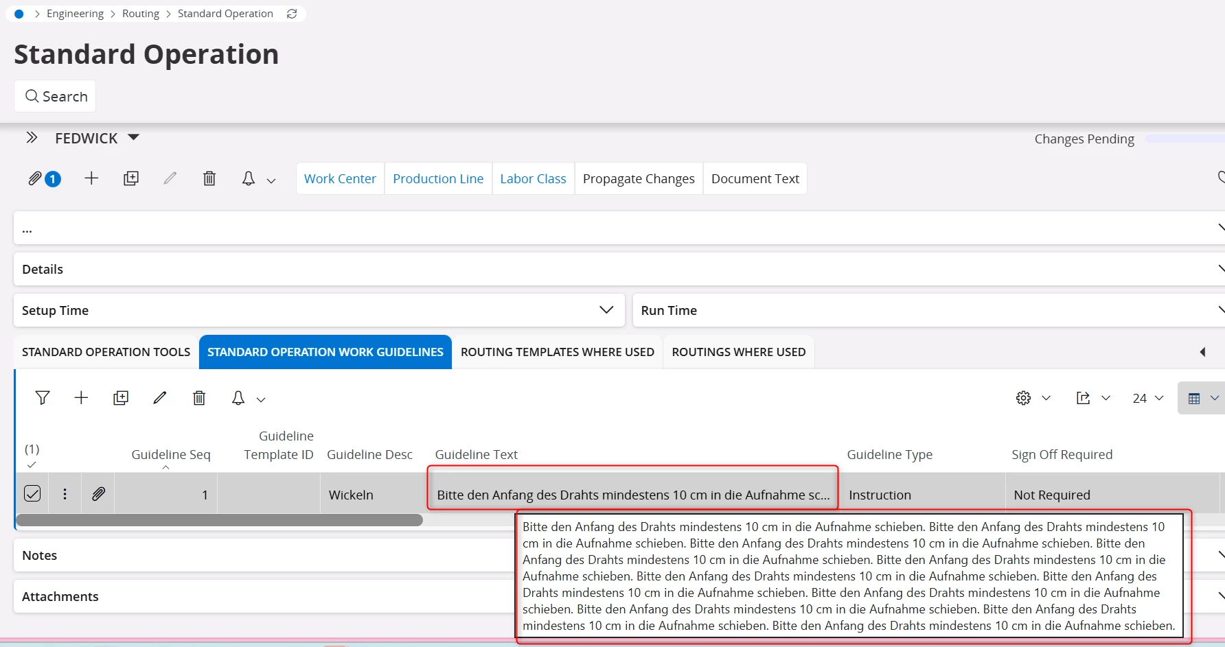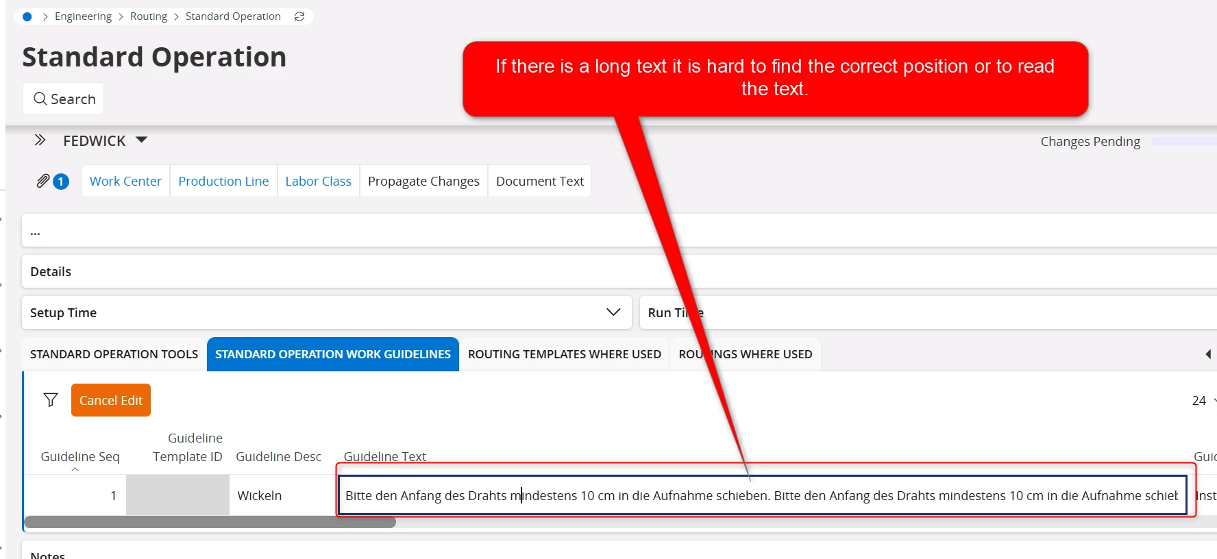 In this field it is not possible to open the Detail text as for example in the “Routing Operation Work Guidelines”.
