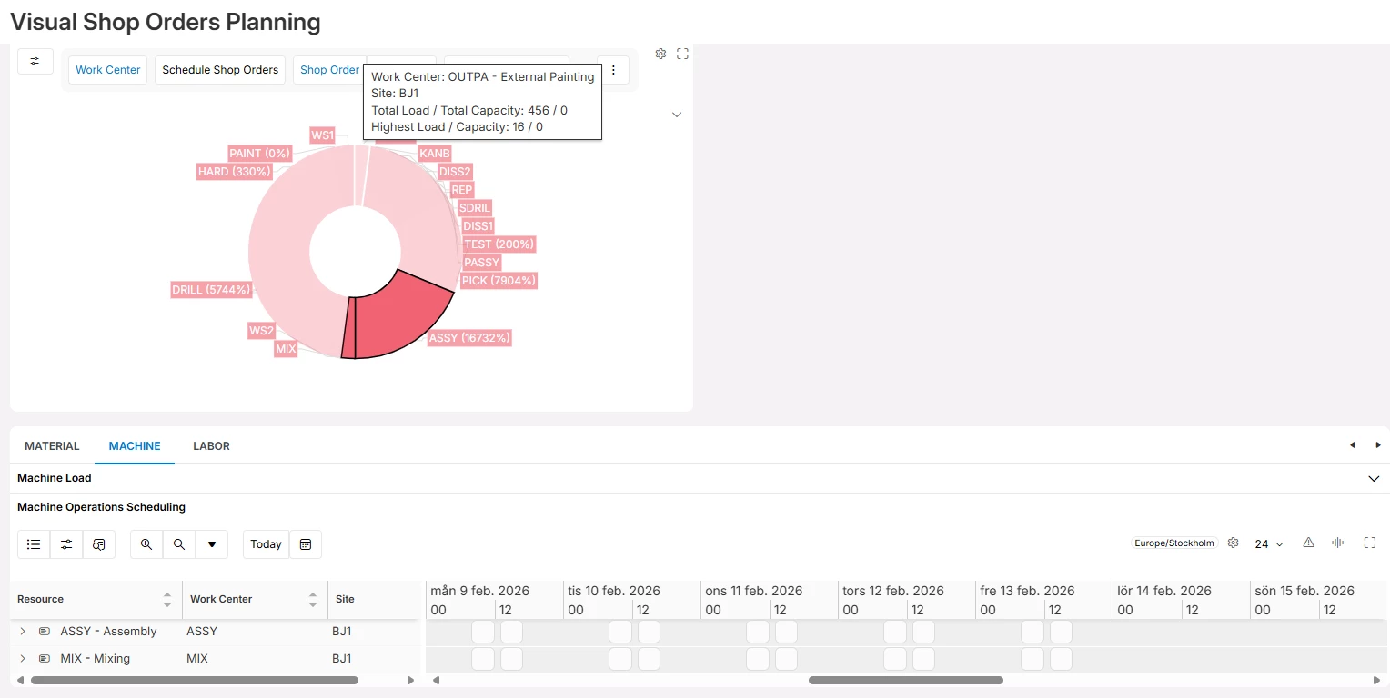3. If you are on the Visual Shop Order Operations page, simply search for only the relevant work centers. If you are on the Visual Shop Orders page you can use the Machine Availability