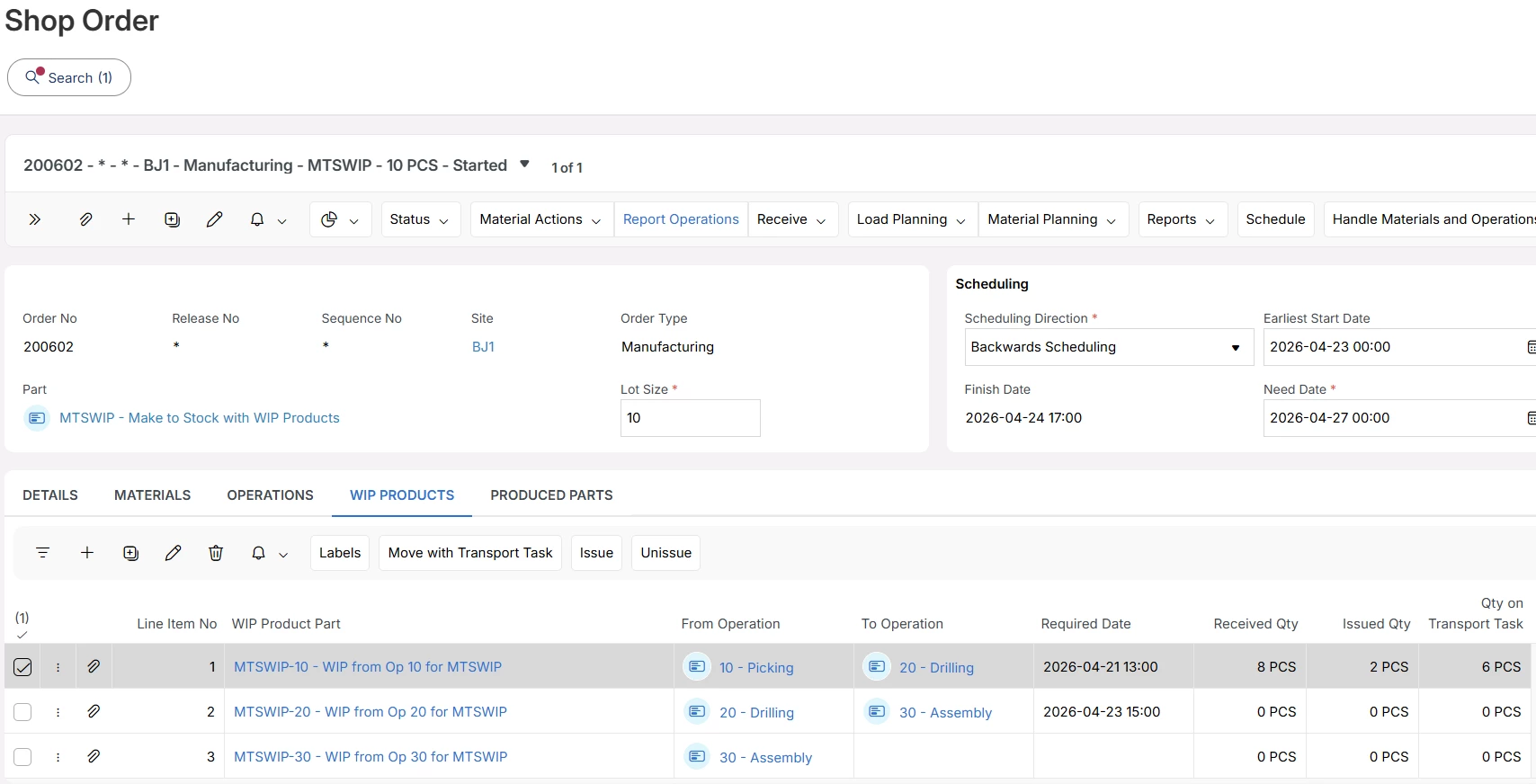We would like to understand how to effectively trace and manage Work-in-Progress (WIP) at each stage of this process within IFS.