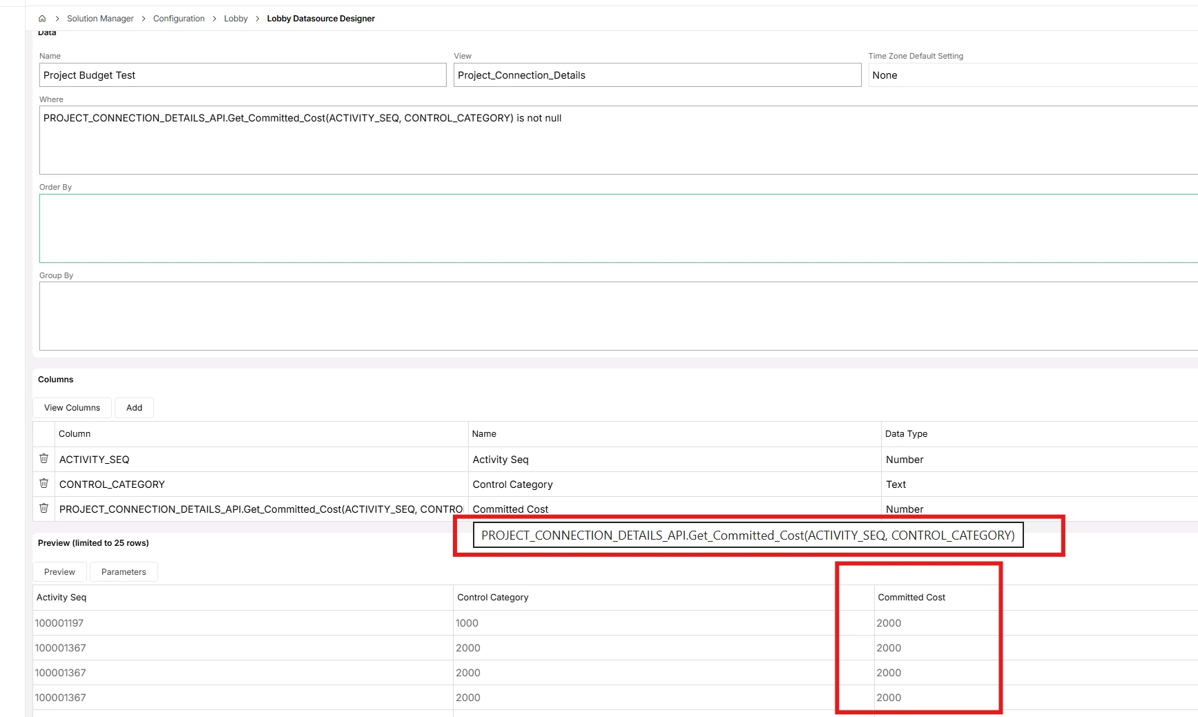 Any way to get committed cost and used cost via API for a Lobby Datasource?