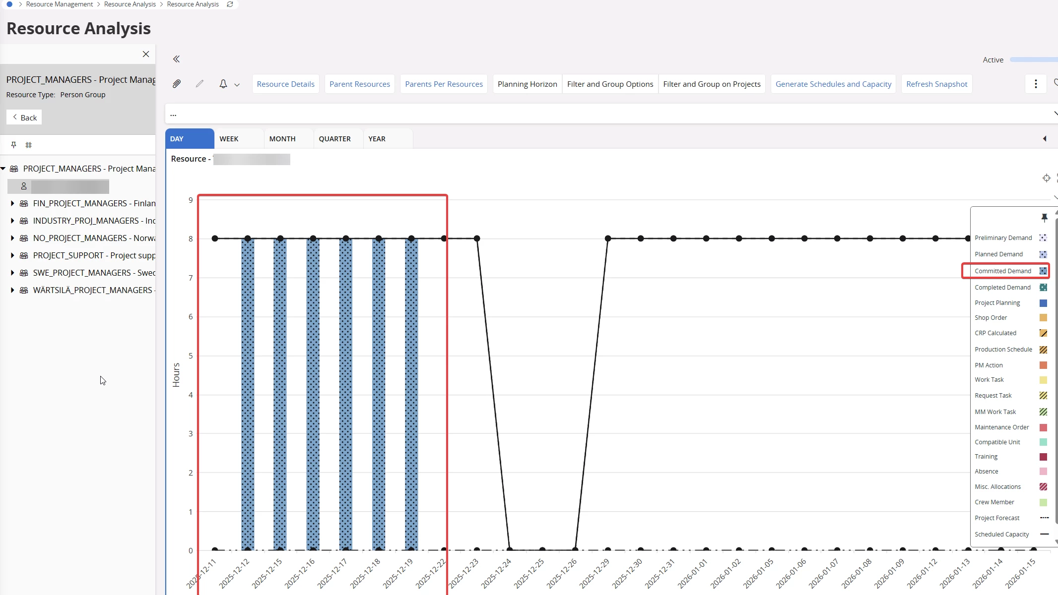 There is a requirement of showing the capacity drop in the resource analysis window, when an employee is on leave. As shown in the screenshot, when the employee working full 8-hour days, the capacity line appears flat. When employee work partial hours (for example, only 5 hours), the capacity line drops accordingly, reflecting the reduced hours. Similarly, if an employee apply absence on any working day, the capacity should drop to zero (0) hours. How can we build this connection between employee absence and capacity in resource analysis in IFS cloud application? Appreciate your support. Thank you!