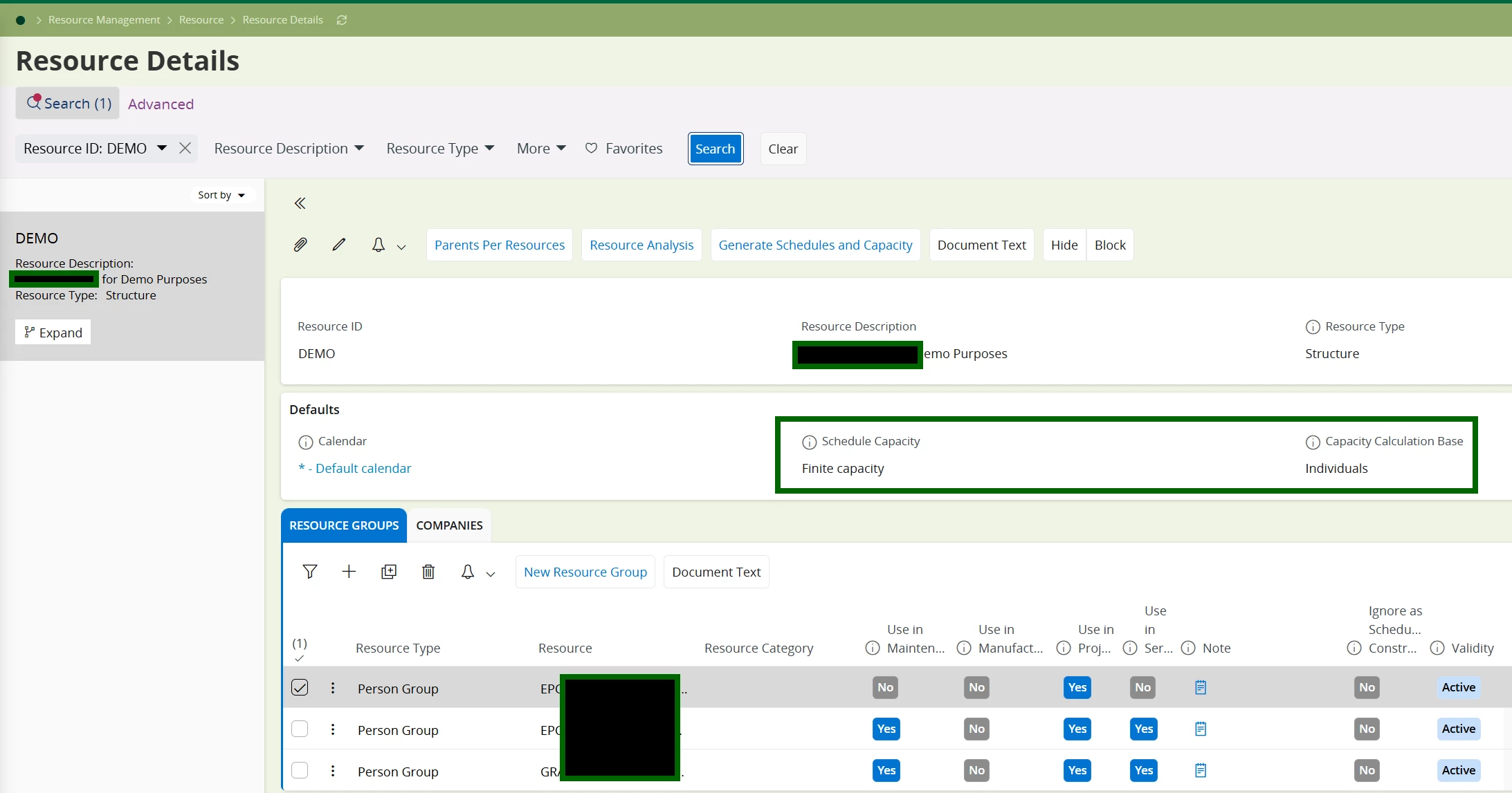 - Any documented best practices for keeping resource group capacity in sync with planned hours and avoiding negative capacity in analysis.
