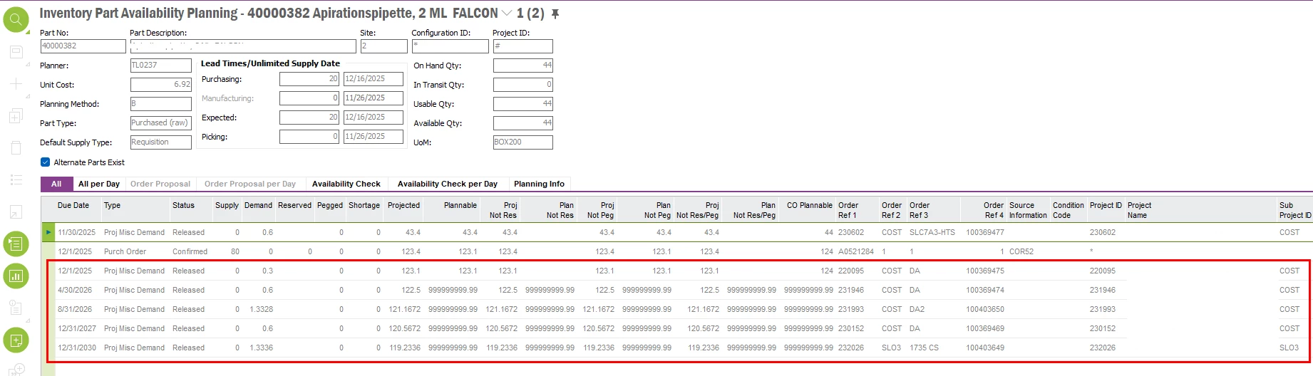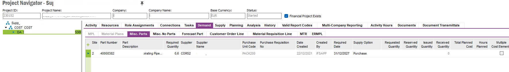 We don’t use the Demand / Misc. Parts intentionally on Project Activity, means when I asked around nobody added lines manually to this window.