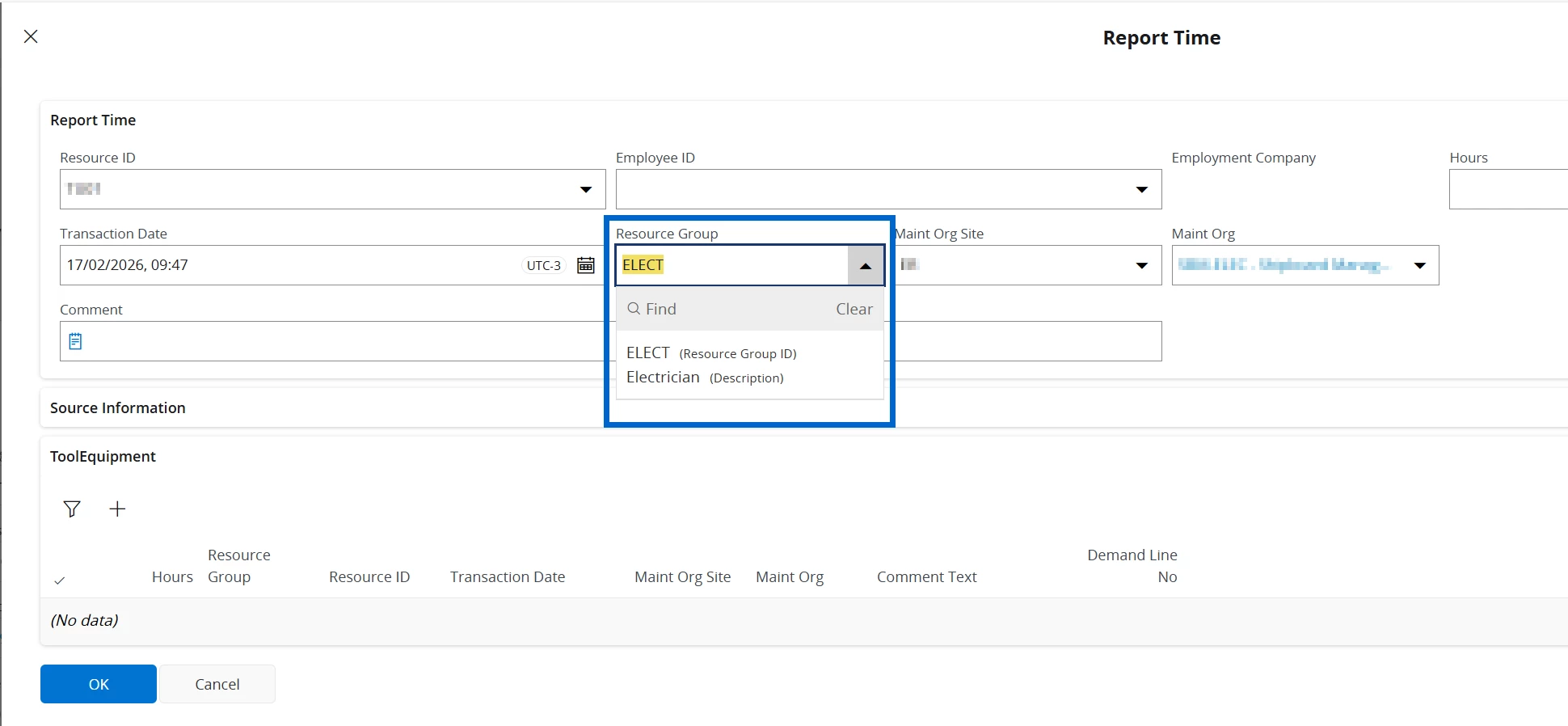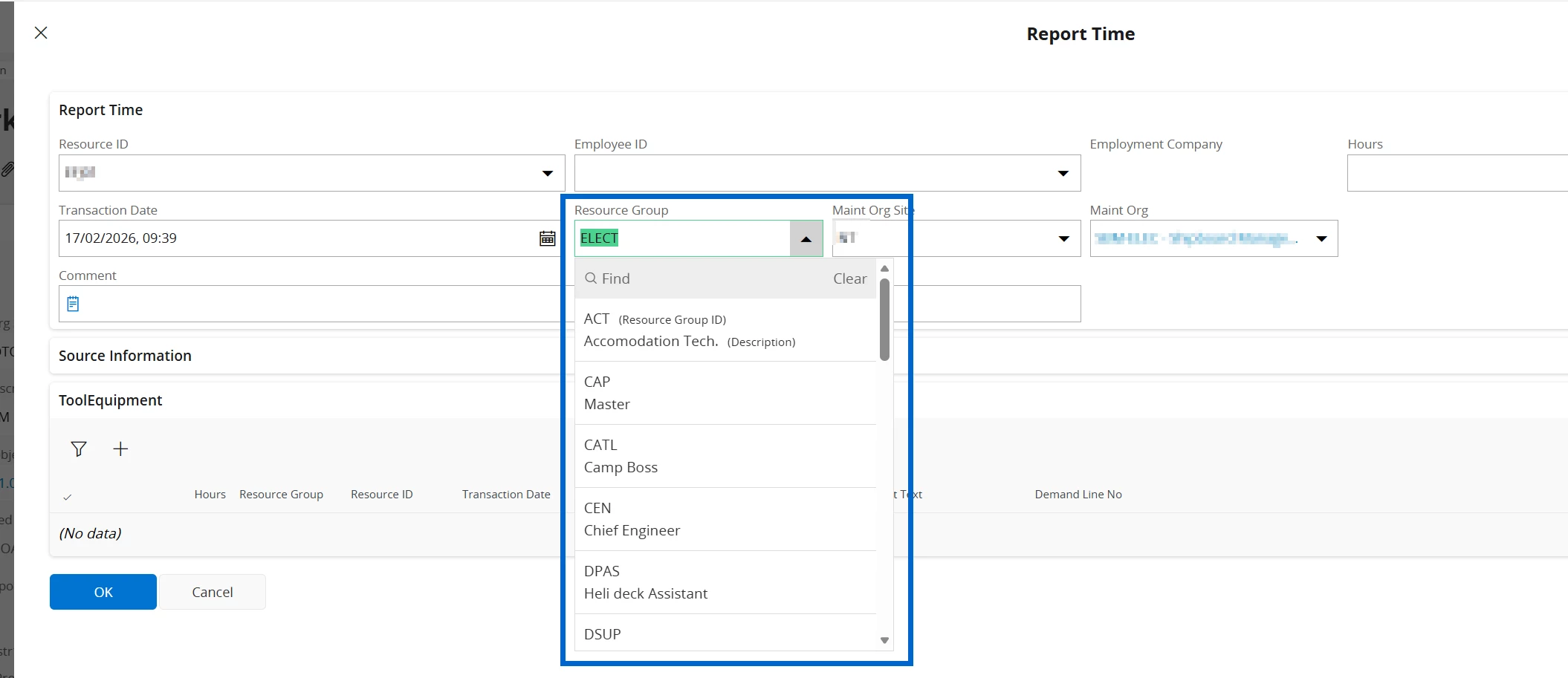 We have recently upgraded from 24R1 to 25R1 and have noticed a difference on the time registration in the Work Task. Previously a user would be able to select the Resource Group from the LOV, now in 25R1 we can only see the Resource Group for the user. As we have work that can be carried out / assisted by different several Resource’s, we need to be able to register time quickly for those.