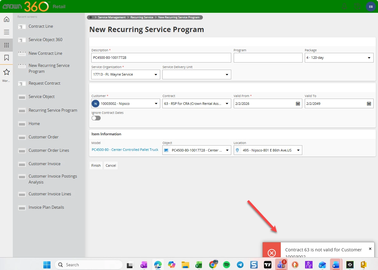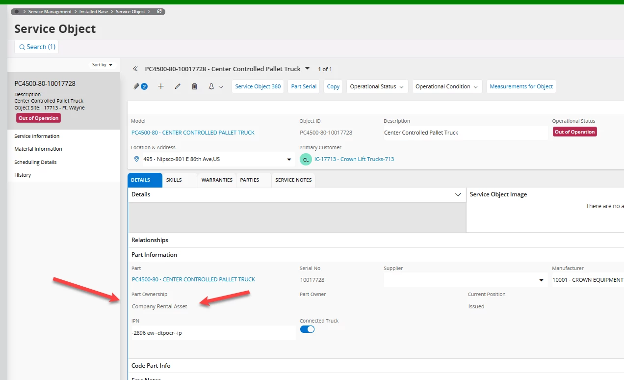 Service object PC4500-80-10017728 is a ‘Company Rental Asset’