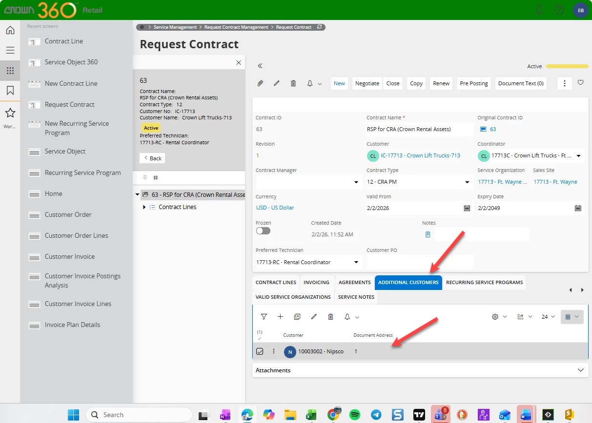 Is there a way to have one request contract and tie it to multiple Recurring Service Programs with differing customers? We had planned on using request contracts for our rental program where thru the course of an service object’s life, the object is either at a customer location or in house location.