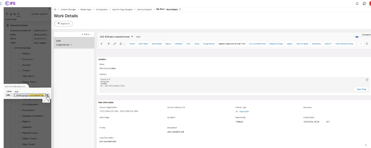 But, when I try to add a ExternalNavigationLink in the “Apps for Page Designer” page to add a Button in MWO that in this case searches the LocationName in google I get a Null value as result. I tried it with different ${values} but without succes.