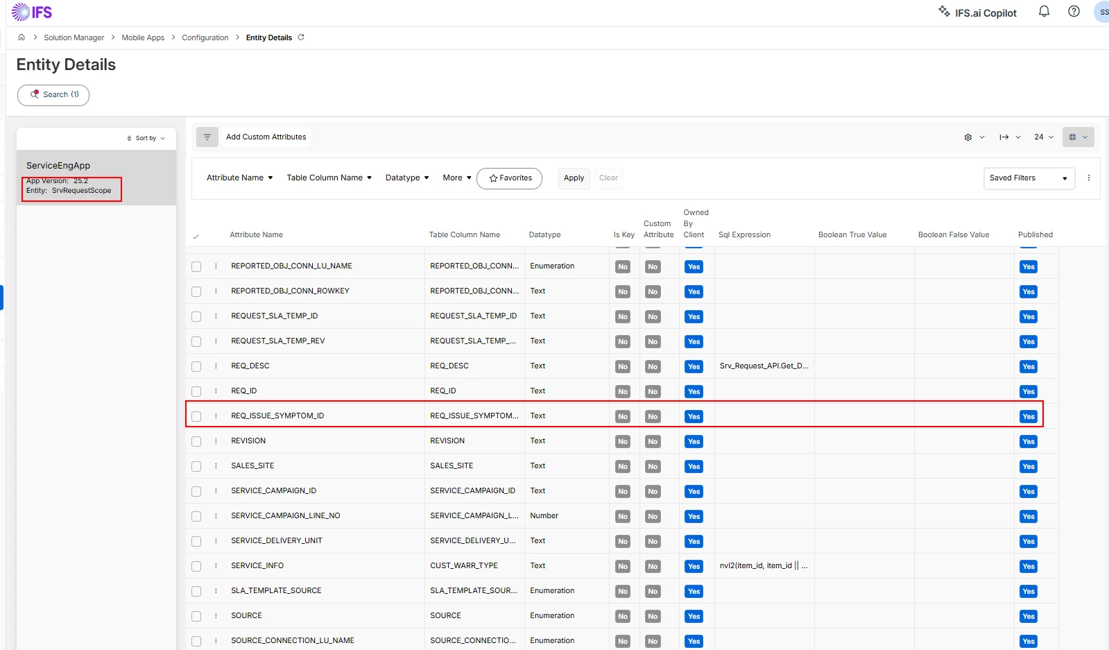 when I look into the sync rule for SrvRequestScope, a lot of fields are synchronized to mWO, e g REQ_ISSUE_SYMPTOM_ID :