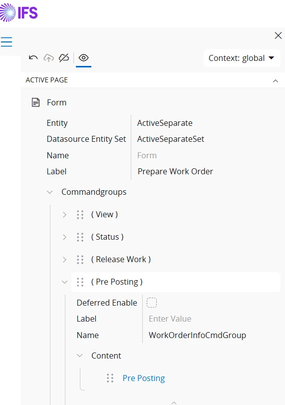I can’t find a way into the Page Designer to unabled the edition of the column in Pre Posting table from is own pop-up in the PREPARE WORK ORDER window.
