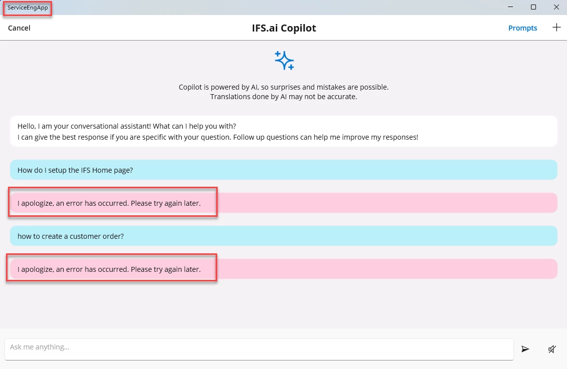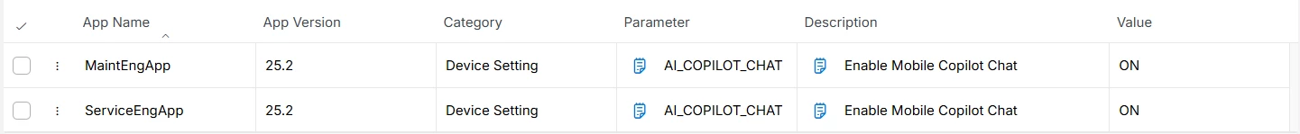Is there an option to load IFS ai.Copilot in MWO Service or Maintenance applications in 25R1? Or it’s not available in mobile apps yet similar to the main application?
