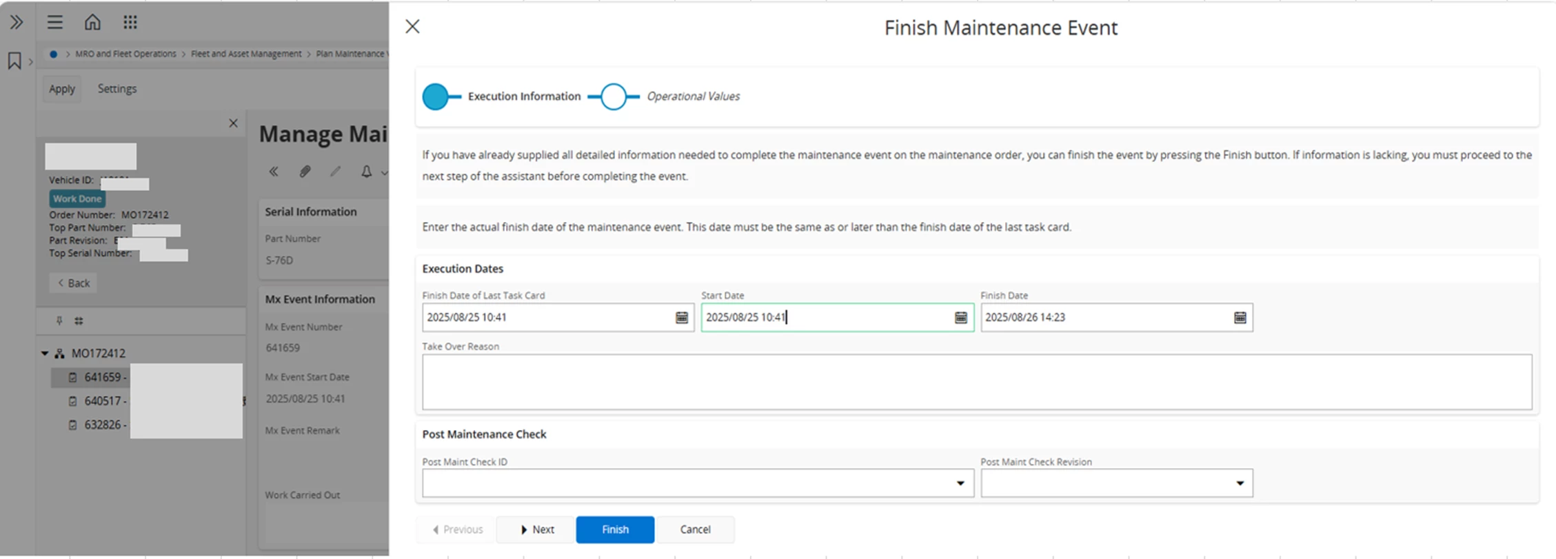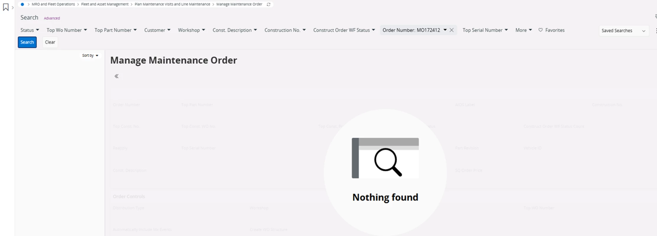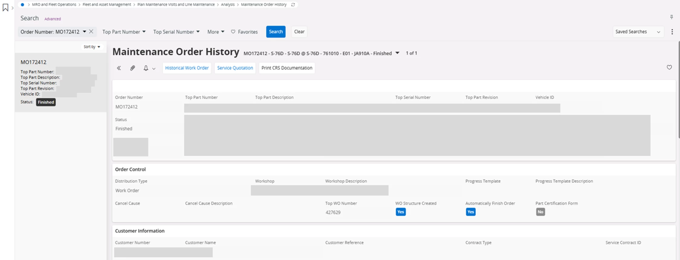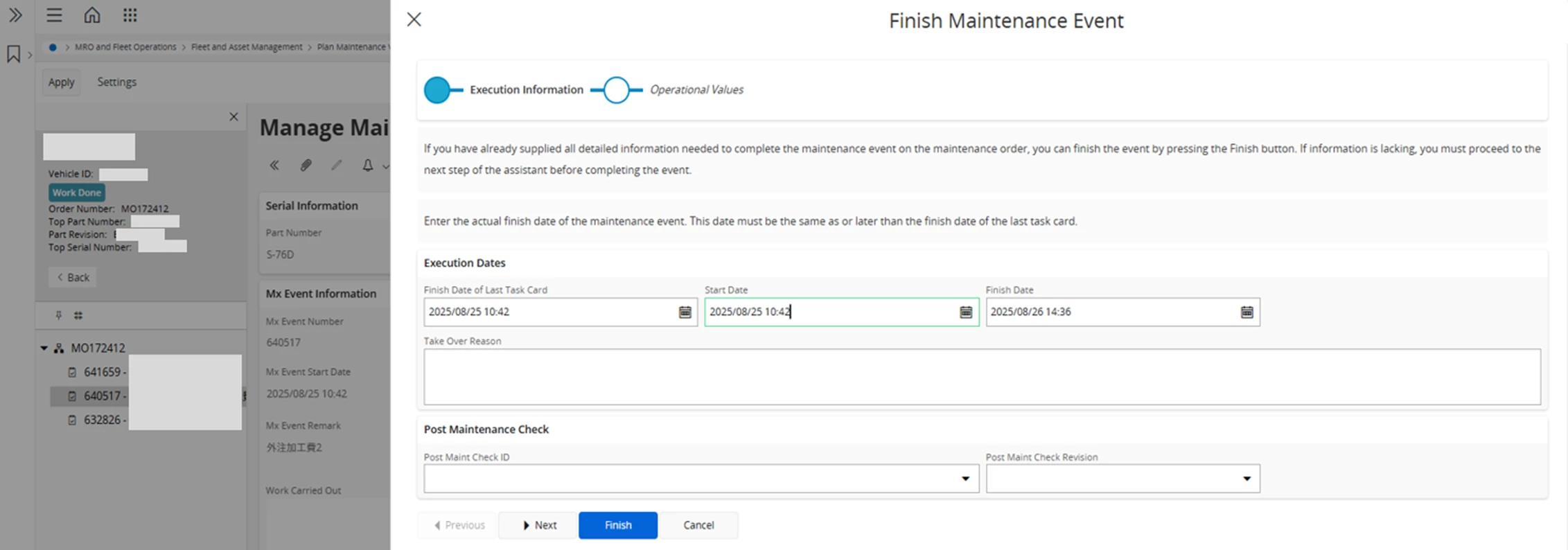the Manage Maintenance Order itself was marked as “Finish,” and the data moved to the Maintenance Order History.