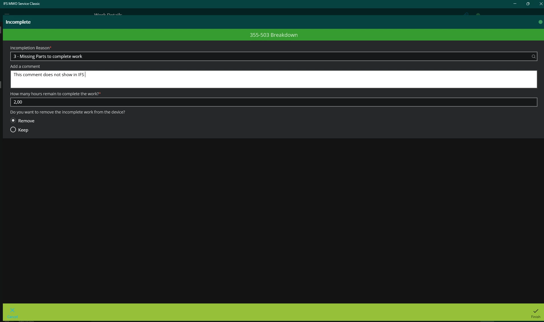 I cant seem to find the incomplete comments inserted from MWO when incomplete a Request Task.