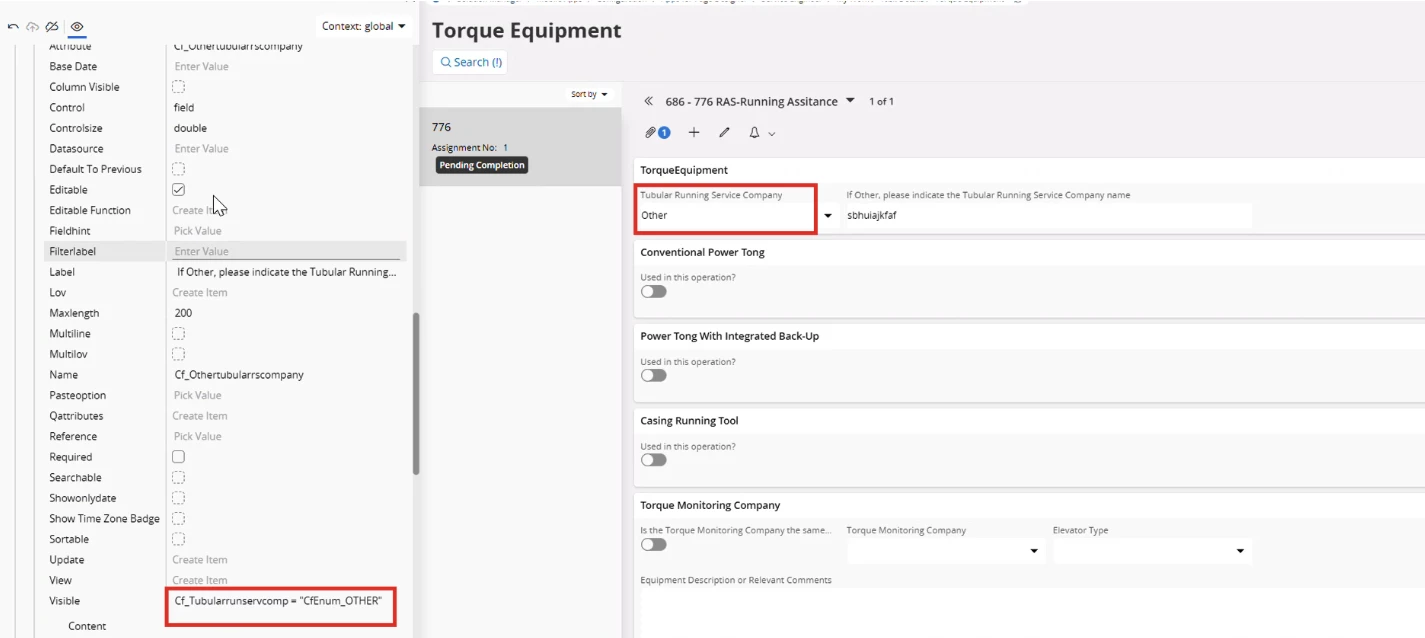 Ex: make the text field visible only if the LOV value in ‘Other’.
