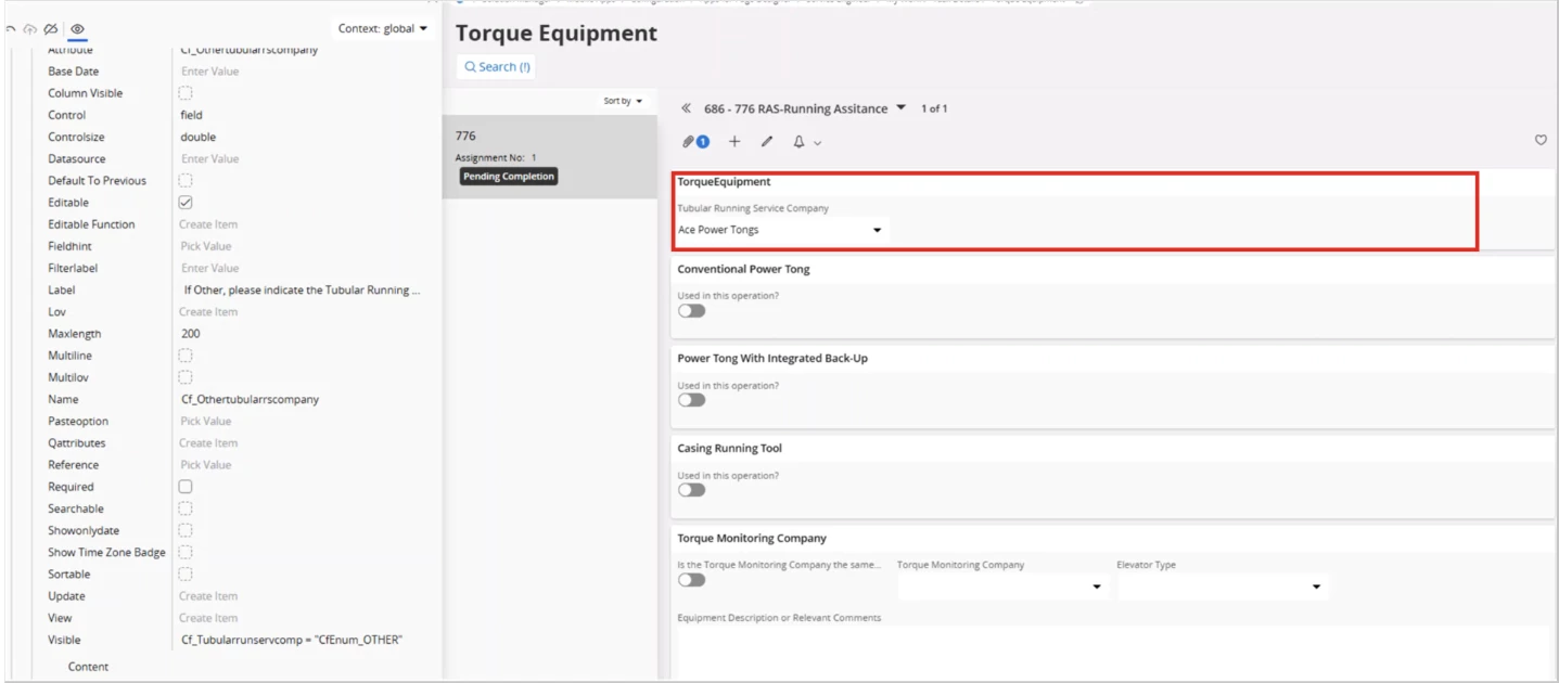 My customer has created a page as an action in mwo and added several fields to that page. In one section they have created two fields; a LOV and a Text field. The customer wants to enable to Text field based on the value they add to the LOV.