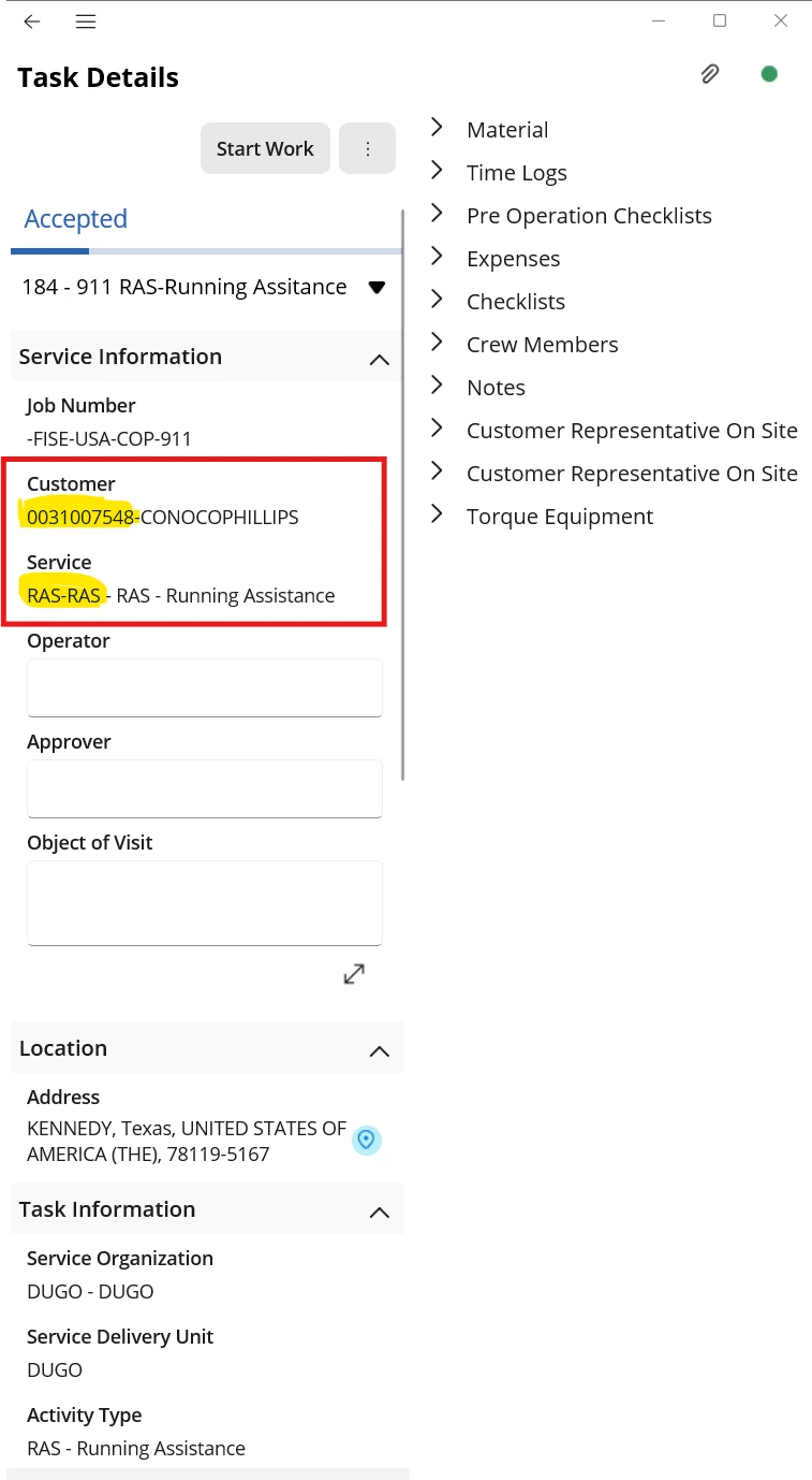 In MWO, we can see the customer information and service information as follows. It doesn’t only show the name, but with the ID.
