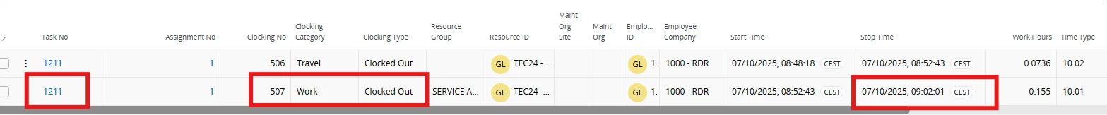 Although the clocking out data is successfully passed to IFS Cloud, the task remains visible under “Work Start” in the MWO mobile app and Work Assignment.