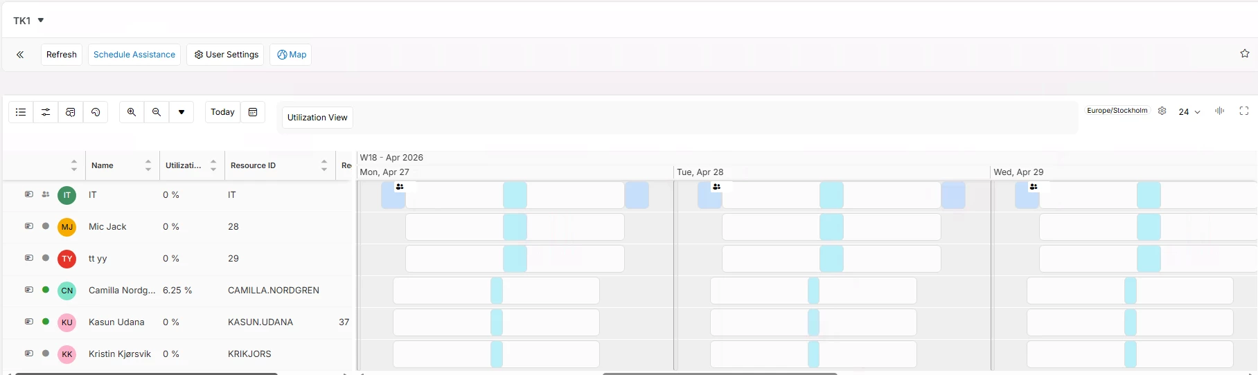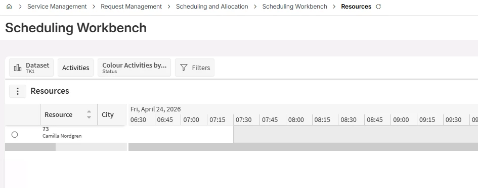 Dataset is linked to some resources and service delivery units. Capacities were calculated and scheduling activity (marked as manually scheduled) types were created.