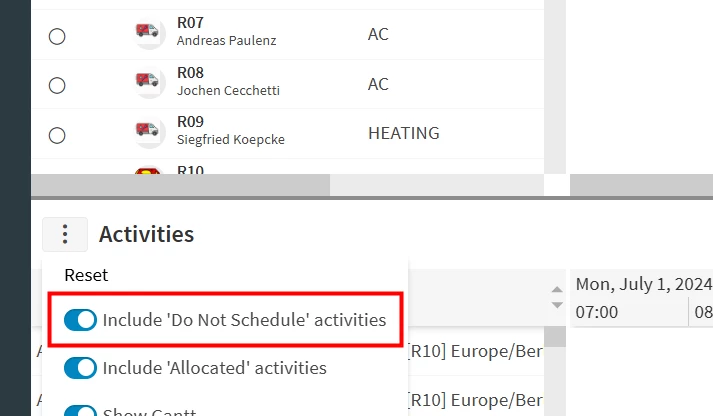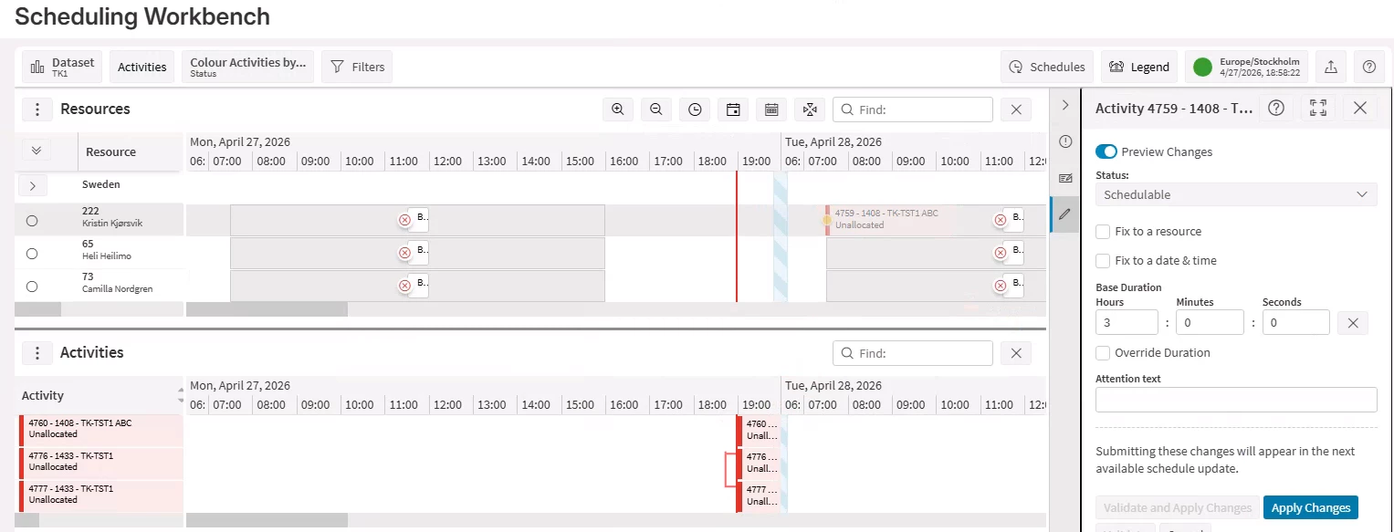 Dataset is linked to some resources and service delivery units. Capacities were calculated and scheduling activity (marked as manually scheduled) types were created.
