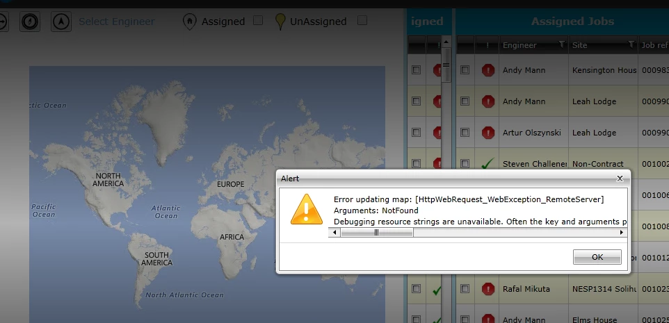 Every time I go onto the scheduler I get an error message on opening the map view & can’t see engineers’ homes?