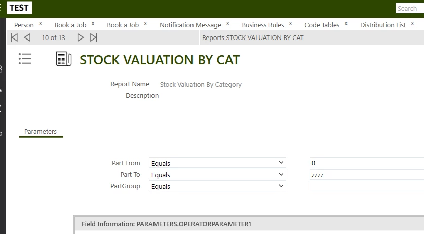 When attaching a report to a notification message, what format does the report parameter need to be in to ensure the report pulls information if the report has required operatorparameters