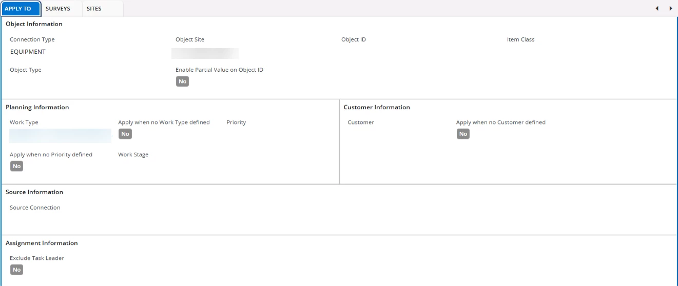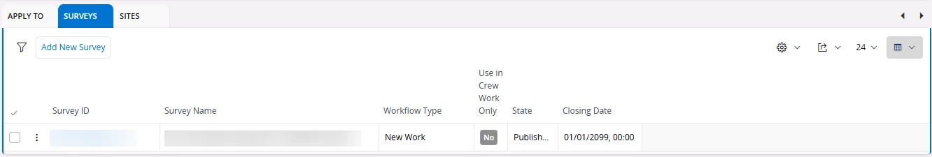 I cannot see any obvious filters on the Apply to tab & no option against the Survey: