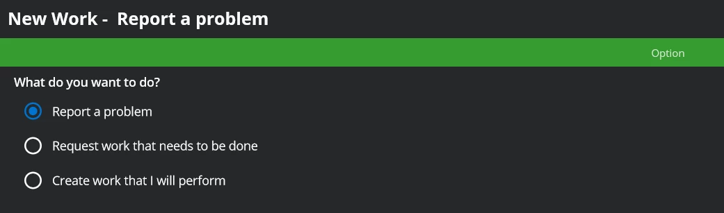 Is it possible to apply to specific New Work options such as ‘Report a problem’, ‘Request work that needs to be done’ and ‘create work I will perform’: