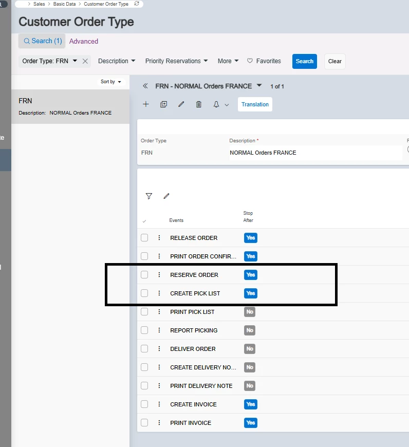 The Order Type used you have in the Customer Order header, then you have a stand-alone page where you see the setup.